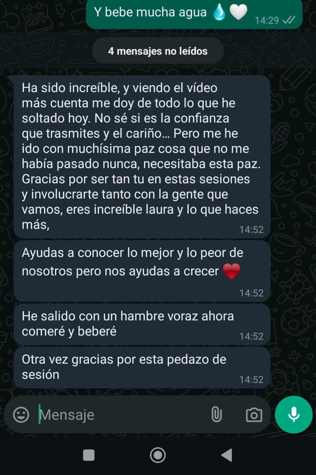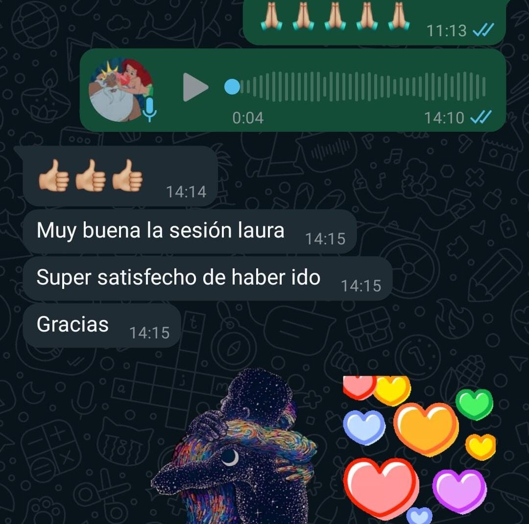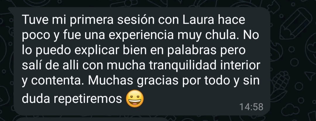 Laura me ha ayudado a liberar bloqueos que ni siquiera sabía que tenía. Su enfoque es compasivo y efectivo. Recomiendo sus terapias a todos los que buscan un cambio profundo