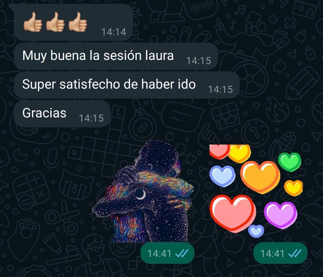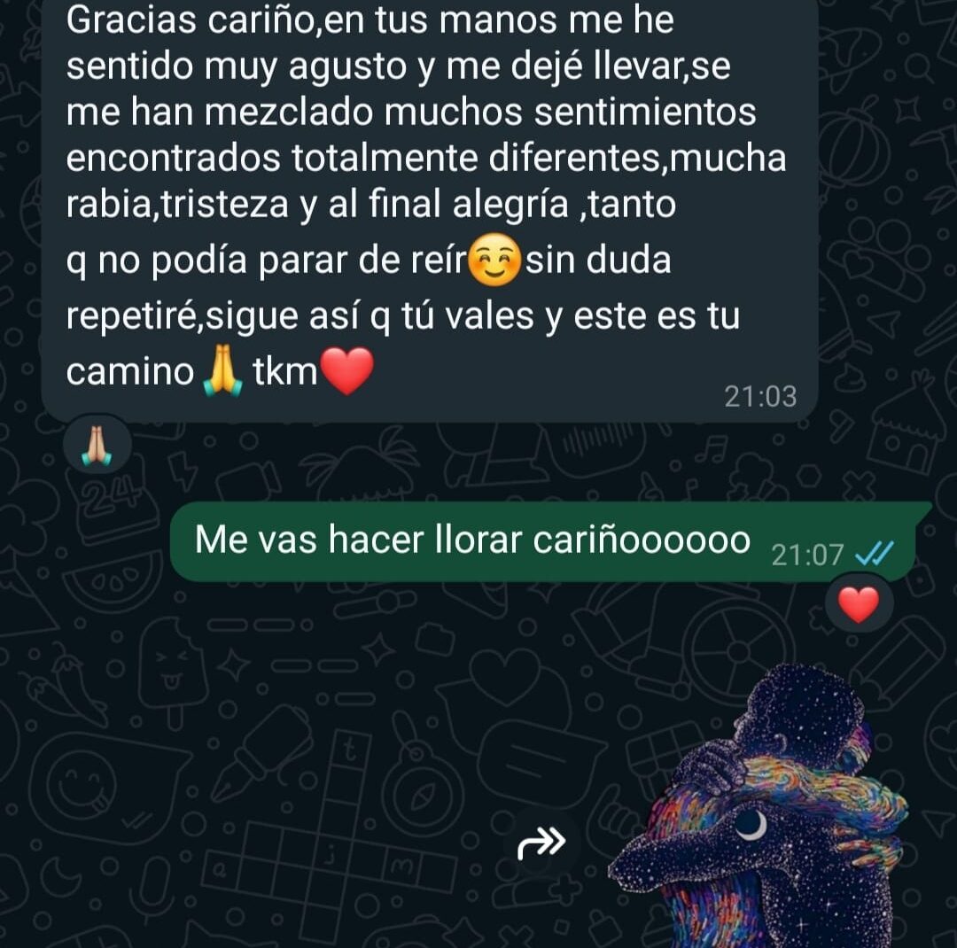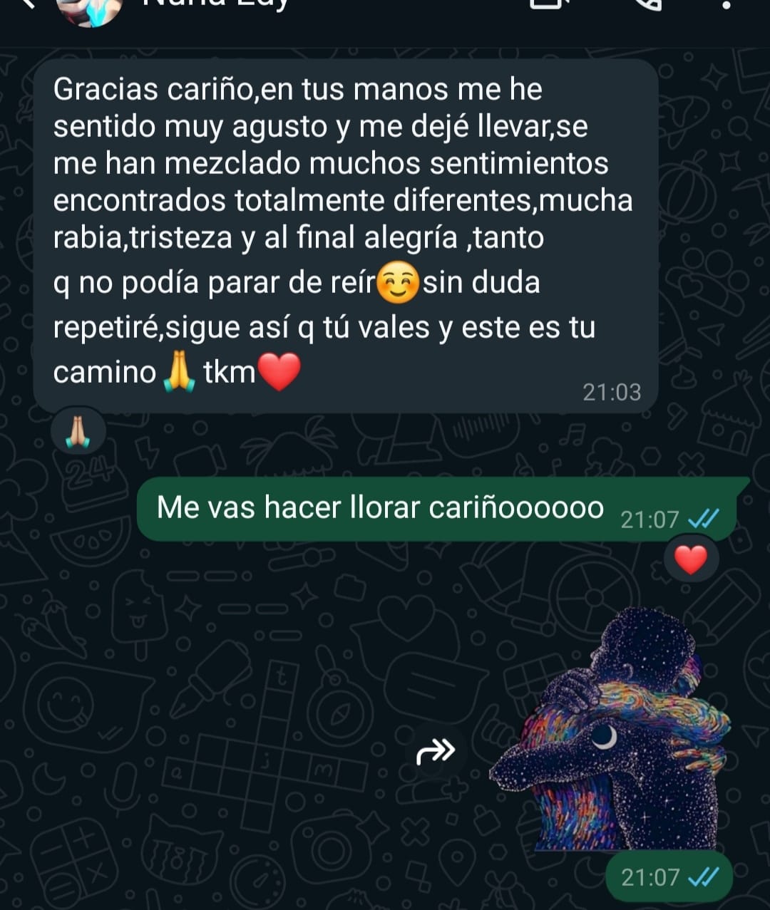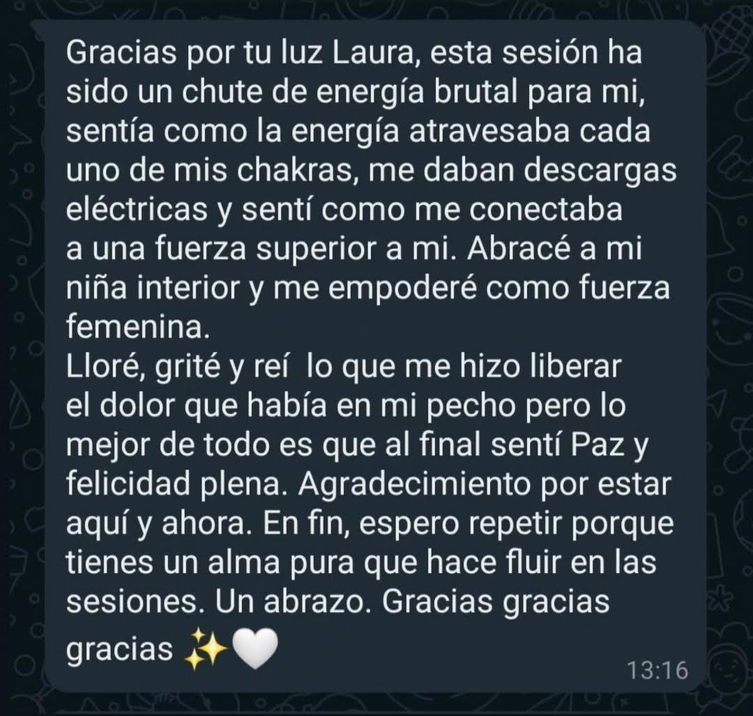 Después de varias sesiones con Laura, siento una paz interior que nunca había experimentado. He liberado viejos traumas y ahora vivo con más alegría y confianza